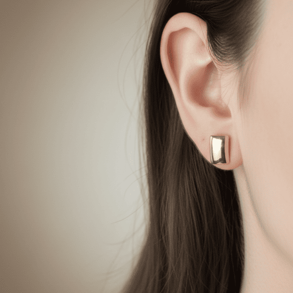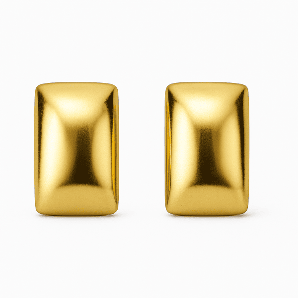 ➣ Brinco retangular dourado com acabamento polido em ouro 18k.
