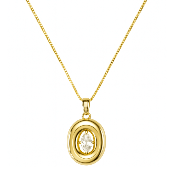 ➣ Colar de design escultural com corpo arredondado e pedra de zircônia central facetada em destaque no banho de ouro 18k.